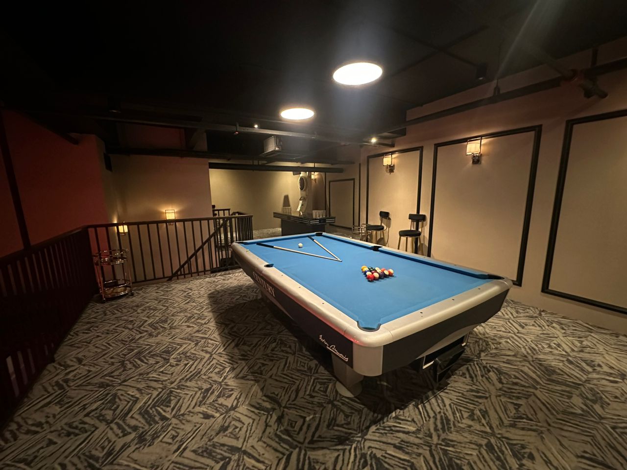 沙发厚、桌面稳、空间大,不挤不乱,完全是尊贵男人的夜生活配置。你看看这里还可以跟朋友兄弟一起喝喝酒打Pool~